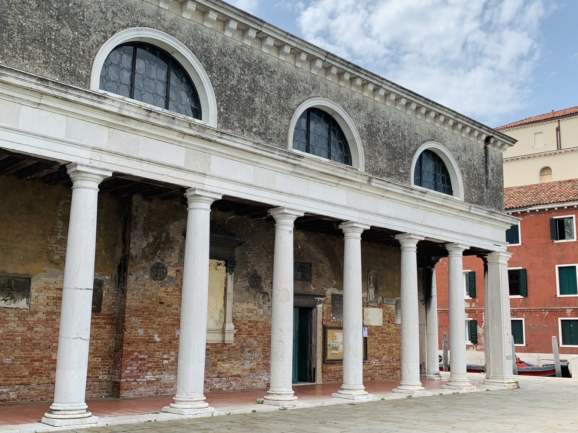 27. Juli 2021 - Ich sitze wieder einmal auf einer Kirchenbank, und eigenartigerweise fühle ich mich wohl. Diese kleine, von außen ganz unscheinbar wirkende uralte Kirche "Sant‘ Eufemia", die aus dem 18. Jahrhundert stammt - ein einfacher Bau im romanischen Stil auf der Giudecca - erscheint mir innen so anders, als all‘ die anderen gruftig-dunklen katholischen Kirchen, die ich so kenne. Inzwischen mache ich um katholische Kirchen im Allgemeinen ja einen großen Bogen, da mir bei jedem Besuch - wo auch immer in der Welt - sofort alles Erdrückende aus meiner Kindheit hochkommt und ich an die unzähligen Sonntage denken muss, an denen ich bis hin zur Pubertät wöchentlich eine heilige Messe absitzen musste.