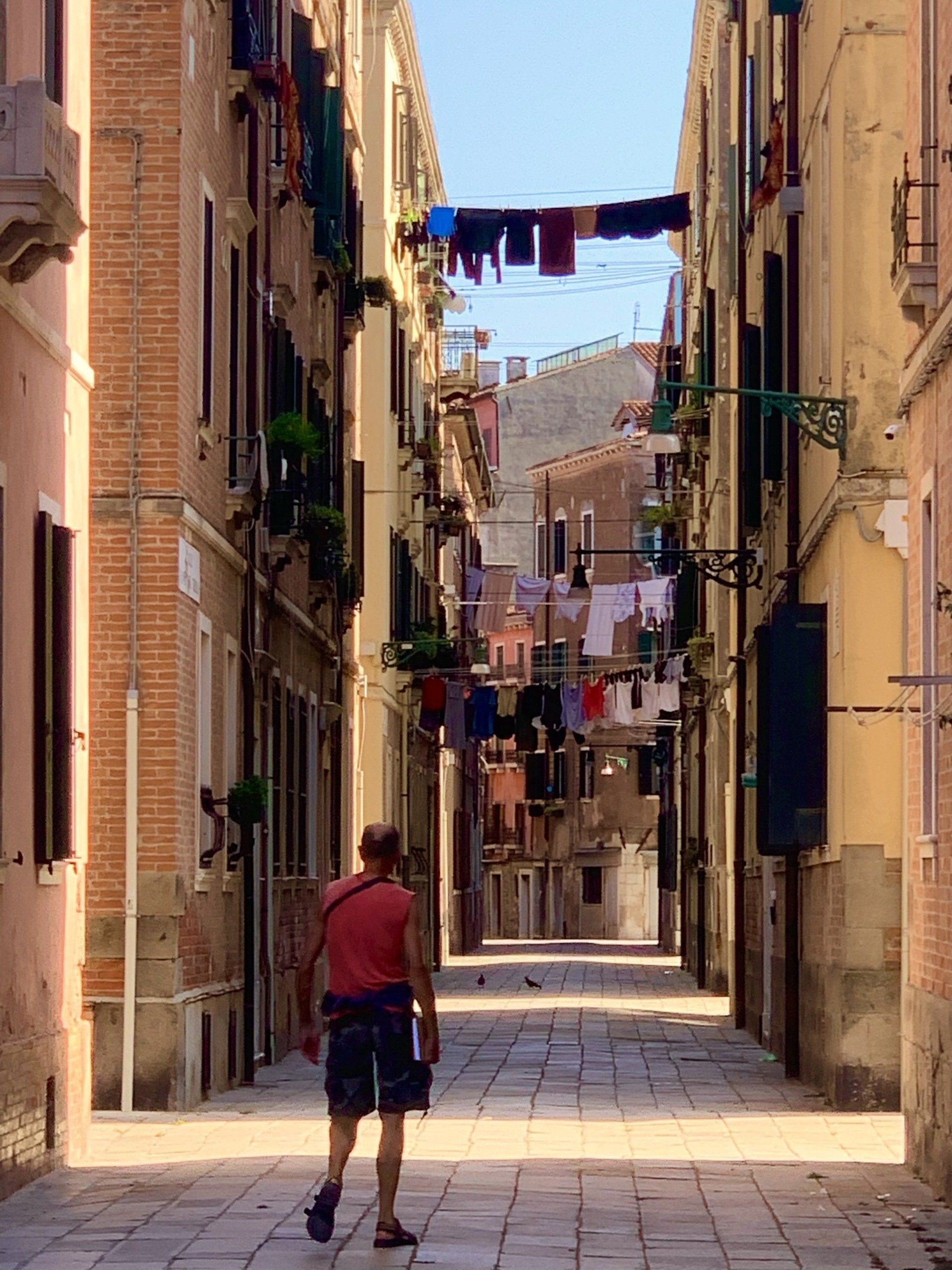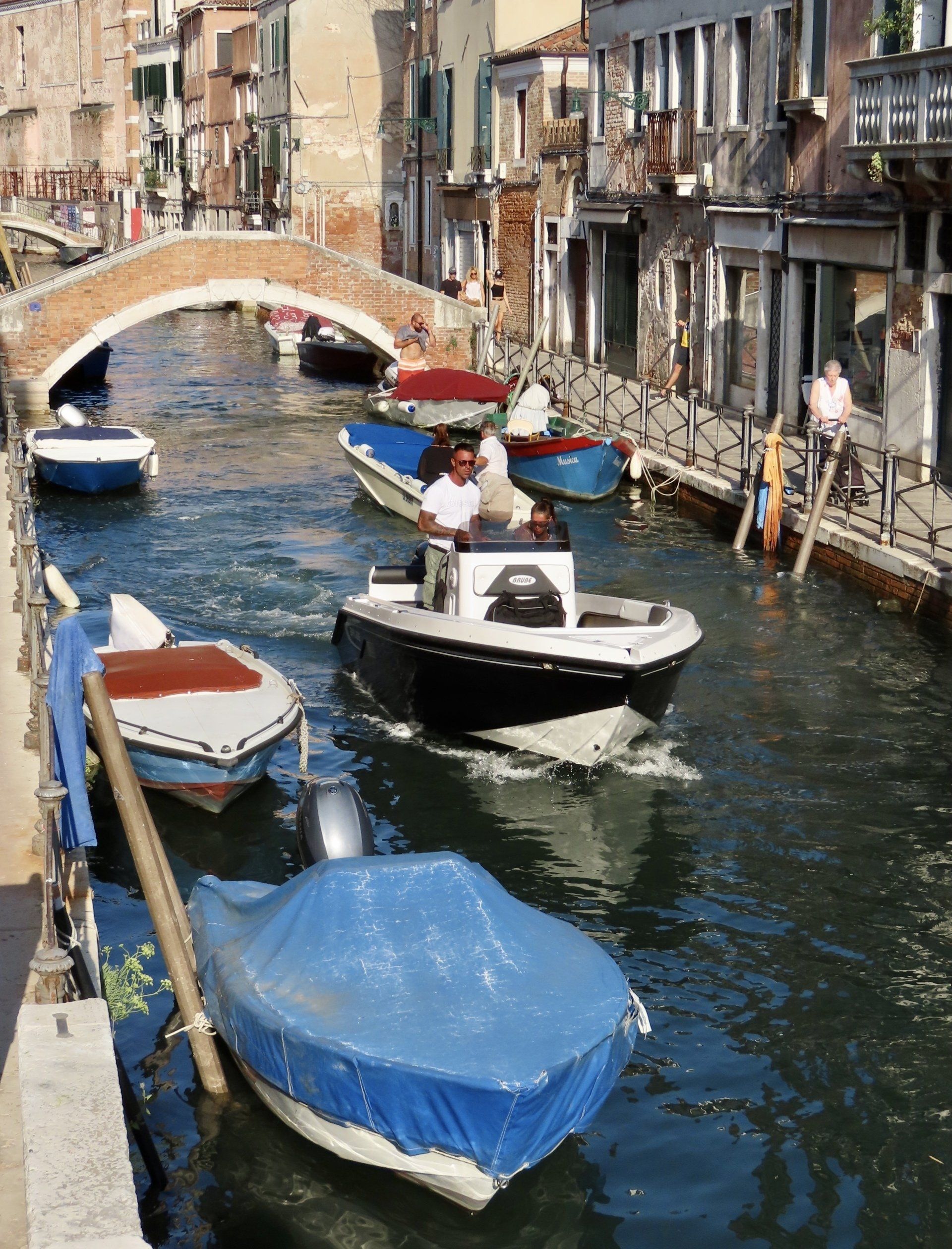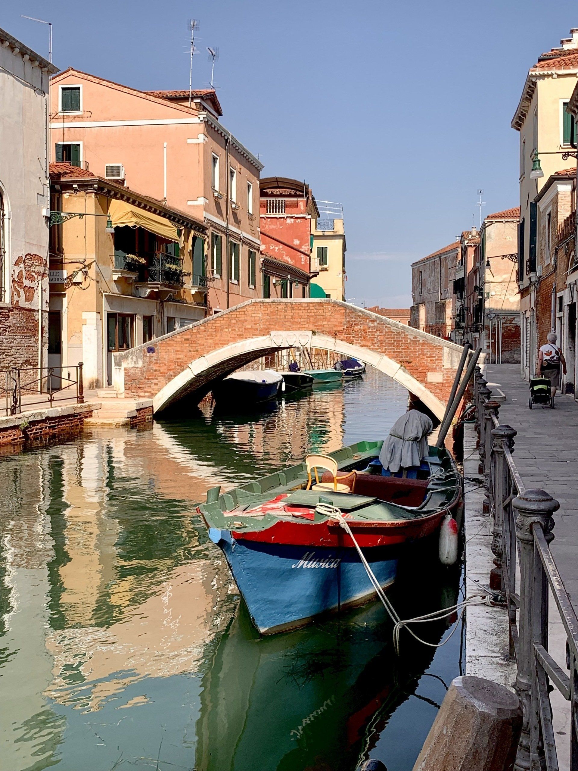 28. Juli 2021 - So hatte ich mir das eigentlich in meinen schönsten Träumen vorgestellt: Gemütlich in einem einfachen Boot sitzen und unter blauem Himmel von einem echten Venezianer durch die Kanäle gefahren werden. Was für ein Glück, dass wir Marco kennengelernt haben, der in Venedig geboren ist und für den es offensichtlich nichts Schöneres gibt, als seine Heimatstadt guten Freunden zu zeigen, die seine Begeisterung teilen. Er hat uns zu einer langen Bootsfahrt eingeladen, von der wir erst nach 6 Stunden wieder zu Hause ankamen - eine Kamera voller Bilder und Videos und mit einem noch größeren Herz für Venedig. YouTube-Video von Sue.